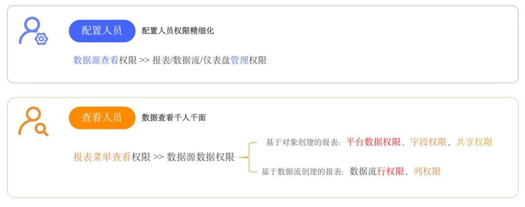 数据流引擎:多源整合,智能加工 报表工厂:零代码配置,业务自助分析 权限安全:多重管控,合规无忧