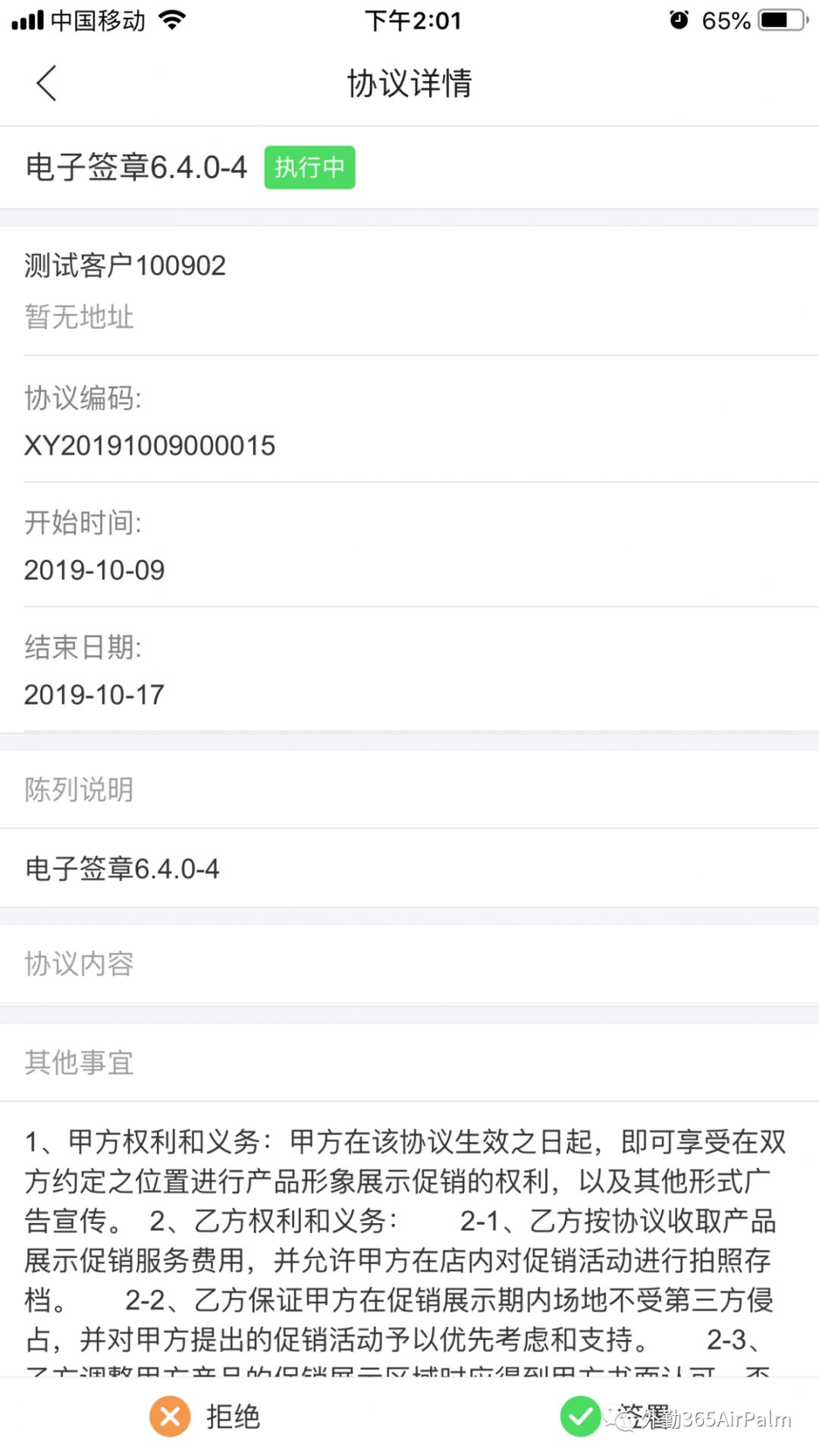 消费品企业各种付费协议的签署无处不在 勤策(原外勤365)推出的电子签名服务 让更多的企业合同签署变得便捷高效 业务员由原来的手工线下签署直接转为线上签署 签署时所有角色的多要素实名认证 让企业签署的每一份合同都真实,合规 优化合同流程的同时 企业检核付费活动更有据可查 如遇合同纠纷,电子签名合同同样具有法律效应,享有法律保护 付费协议的正确打开方式 企业员工A首次发起付费协议的签署前,系统将进行企业实名认证状态的校验,如果企业没有进行实名认证,需要先完成实名认证。 实名认证的流程是: ✦第一步:员工A进行个人三要素实名认证(姓名、身份证号、手机号) ✦第二步:在员工A个人三要素实名认证后,将进行企业四要素认证(公司名称、企业统一社会信用代码、法人姓名、法人身份证号) ✦第三步:如员工A不是法人,将触发企业法人授权,即法人授权员工A进行合同签署。授权后,企业即在勤策(原外勤365)中向终端门店发起付费协议签署。 ✦第四步:门店老板在(订货365)手机端接收到付费协议,查看付费协议。 ✦第五步:店老板签署协议时,校验用户是否注册认证,如未注册认证,需先完成个人三要素实名认证(姓名、身份证号、手机号) PS:对于客户认证,勤策(原外勤365)提供个人三要素认证和企业四要素认证两种策略,可根据客户情况选择不同的认证策略。 ✦第六步:门店老板通过电子签名服务签署付费协议。 ✦第七步:付费协议加盖个人签名后,仍需完成签署意愿的校验,校验成功则签署成功。 勤策(原外勤365)电子签名,从细节出发 整个签署过程确保了合同的安全合规 速速升级至V6.4.0版本,抢先体验吧~